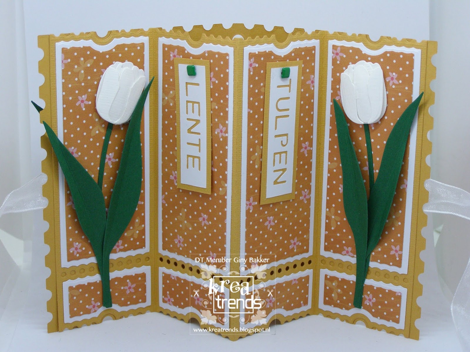 Op de voorkant heb ik 2 tulpen gedaan met een strik en wat pareltjes in de hoekjes.